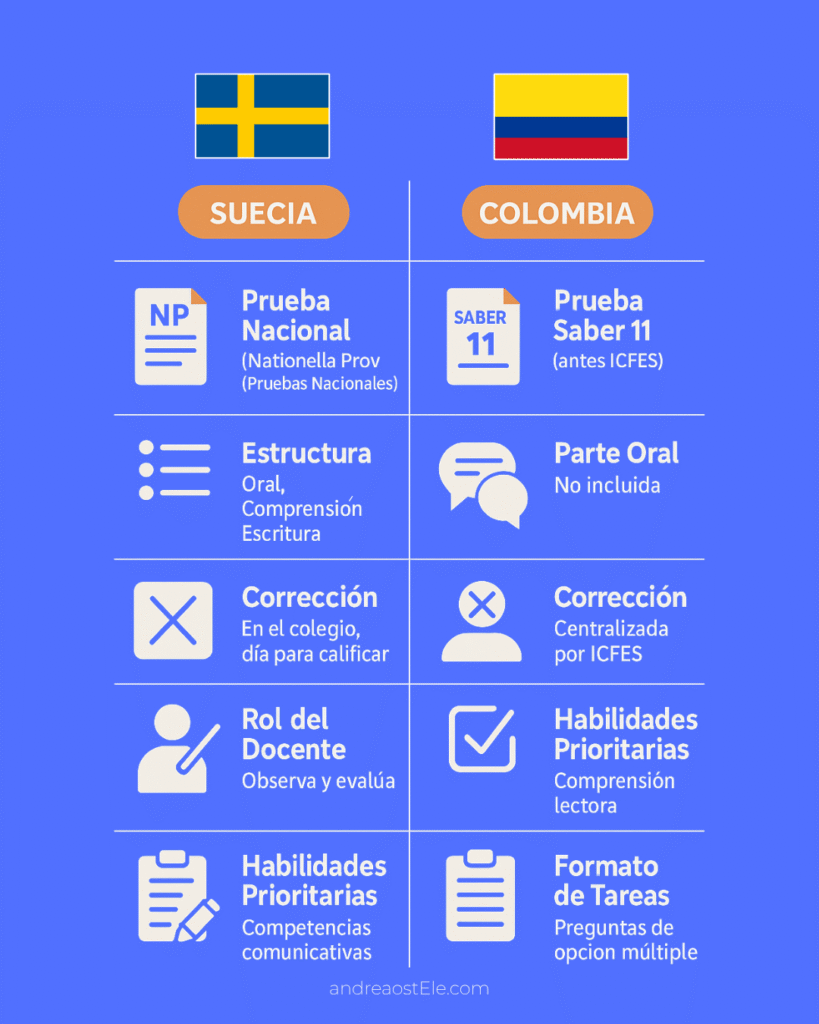 En el colegio donde estudié en Colombia no existía una prueba nacional de idiomas como esta. El examen estandarizado que hacíamos era el ICFES (hoy Saber 11), enfocado principalmente en la comprensión lectora y la gramática.
