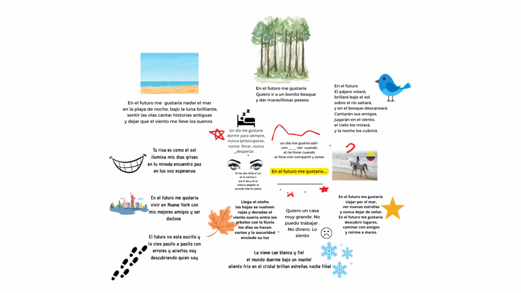 En el libro Gracias de noveno apareció un punto que me encantó trabajar con mis estudiantes: la lectura de un poema seguida de un ejercicio de escritura creativa. La consigna era sencilla pero poderosa: comenzar un poema con la frase “En el futuro me gustaría…”.