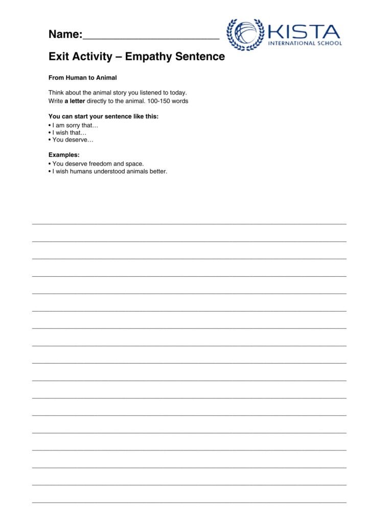 We closed the project with a short exit activity called Empathy Sentence: From Human to Animal. Students wrote one sentence directly to the animal they had listened to, beginning with phrases such as “I am sorry that…”, “I wish that…”, or “You deserve…”. This final moment allowed students to slow down and emotionally process what they had learned.
